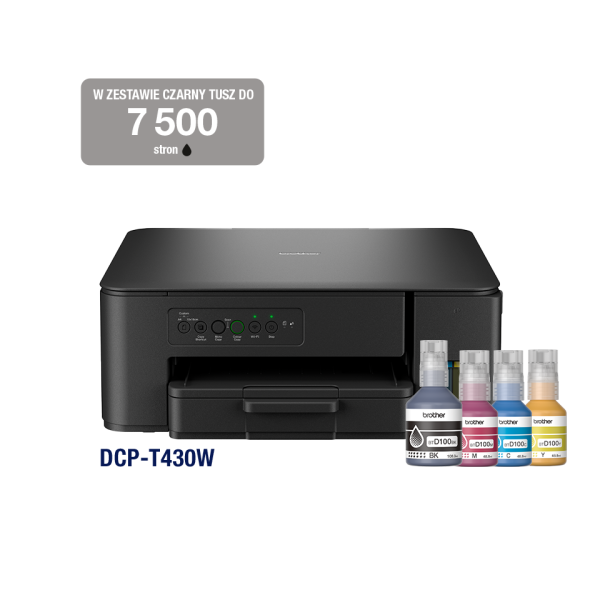 Drukuj więcej płacąc mniej, dzięki super wysokowydajnym butelkom z tuszem, które z łatwością możesz wlać do tego modelu. Ciesz się bezproblemową łącznością i drukowaniem bez zacięć korzystając z urządzenia wielofunkcyjnego DCP-T430W niezależnie od miejsca, w którym jest użytkowane. Drukuj bezpośrednio z lub skanuj do komputera stacjonarnego, aplikacji mobilnej.